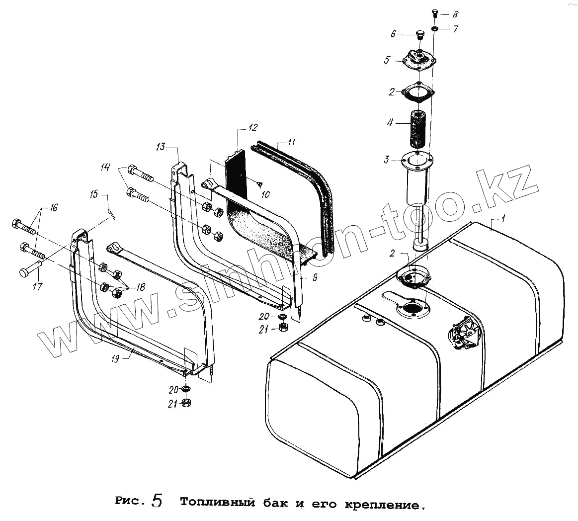 Каталог запасных частей к технике: МАЗ-64229. Топливный бак и его крепление