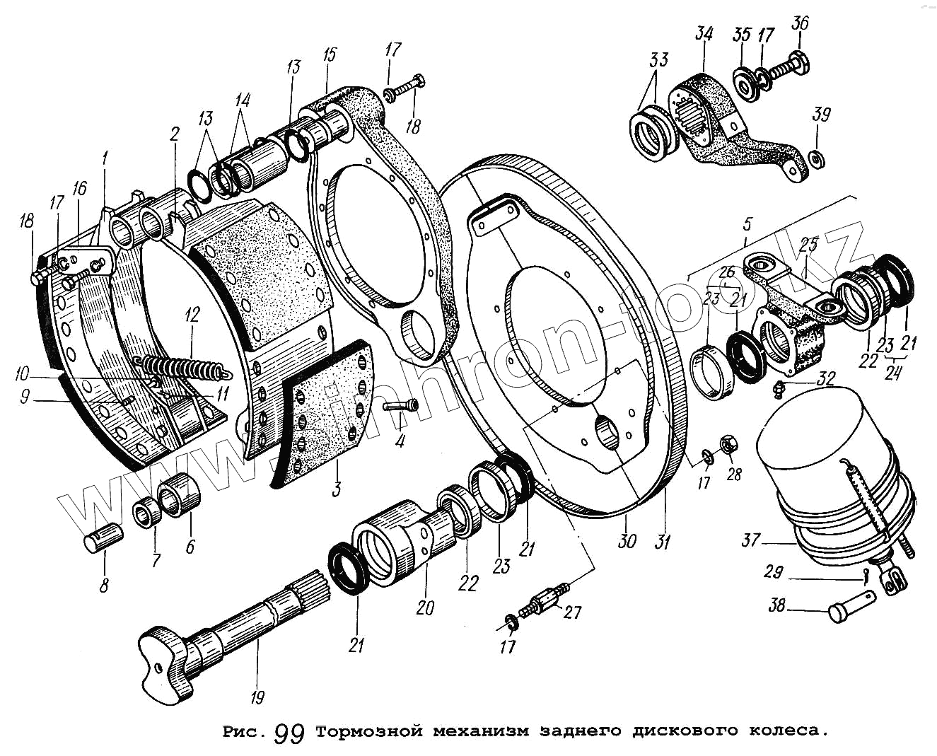 Каталог запасных частей к технике: МАЗ-64229. Тормозной механизм заднего дискового колеса