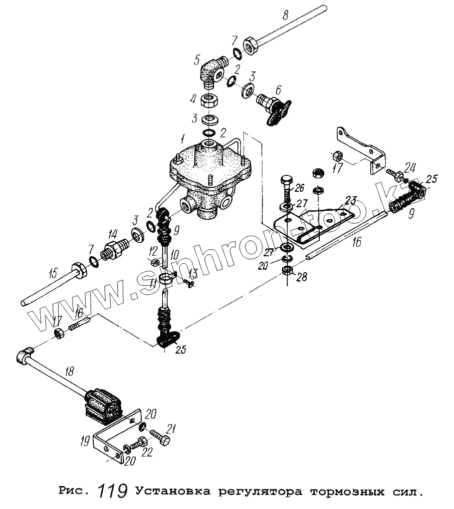 Каталог запасных частей к технике: МАЗ-64229. Установка регулятора тормозных сил