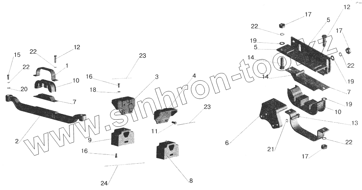 Каталог запасных частей к технике: МАЗ-6422. Крепление двигателя на автомобиле МАЗ-551603