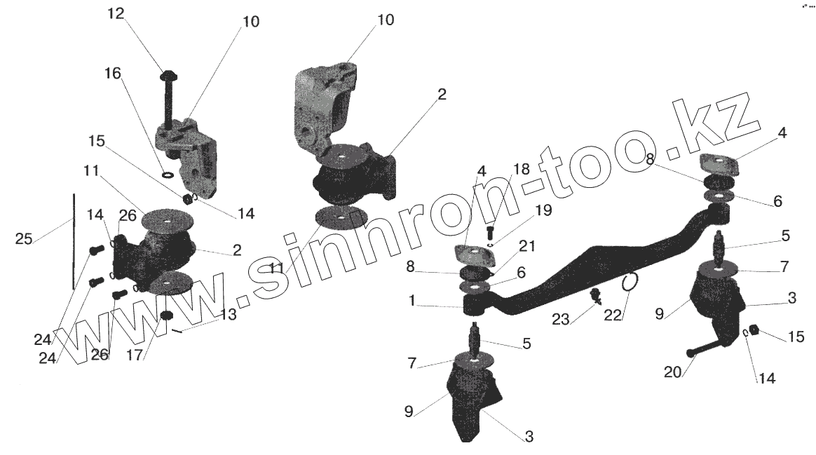 Каталог запасных частей к технике: МАЗ-6422. Крепление двигателя на автомобиле МАЗ-551605