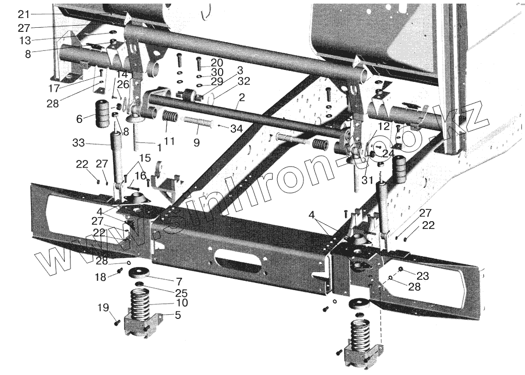 Каталог запасных частей к технике: МАЗ-6422. Переднее подрессоривание большой кабины