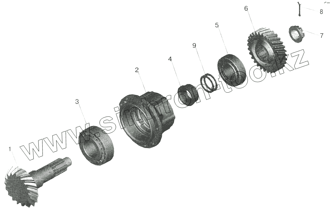 Каталог запасных частей к технике: МАЗ-6422. Редуктор среднего моста. Шестерня ведущая