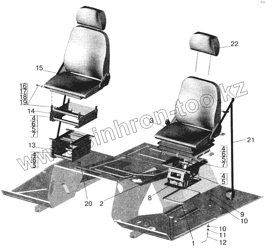 Каталог запасных частей к технике: МАЗ-6422. Установка и пневмопитание сидений 5551-6800006-040