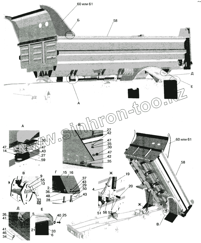 Каталог запасных частей к технике: МАЗ-6422. Установка платформы 555102-8500002