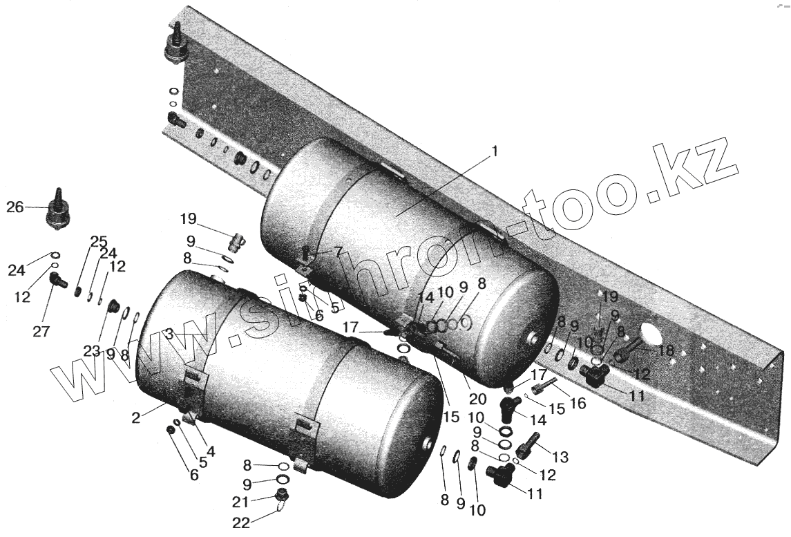 Каталог запасных частей к технике: МАЗ-6422. Установка ресиверов и присоединительной арматуры МАЗ-555102