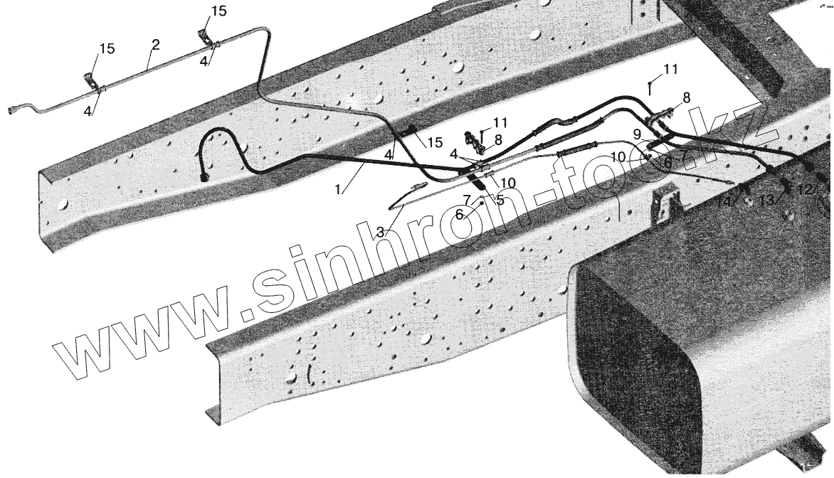 Каталог запасных частей к технике: МАЗ-6422. Установка топливопроводов МАЗ-551605 (без подогревателя)