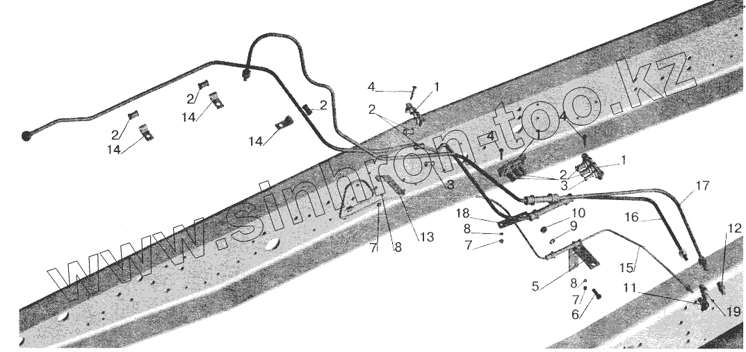 Каталог запасных частей к технике: МАЗ-6422. Установка топливопроводов МАЗ-555102 (без подогревателя)