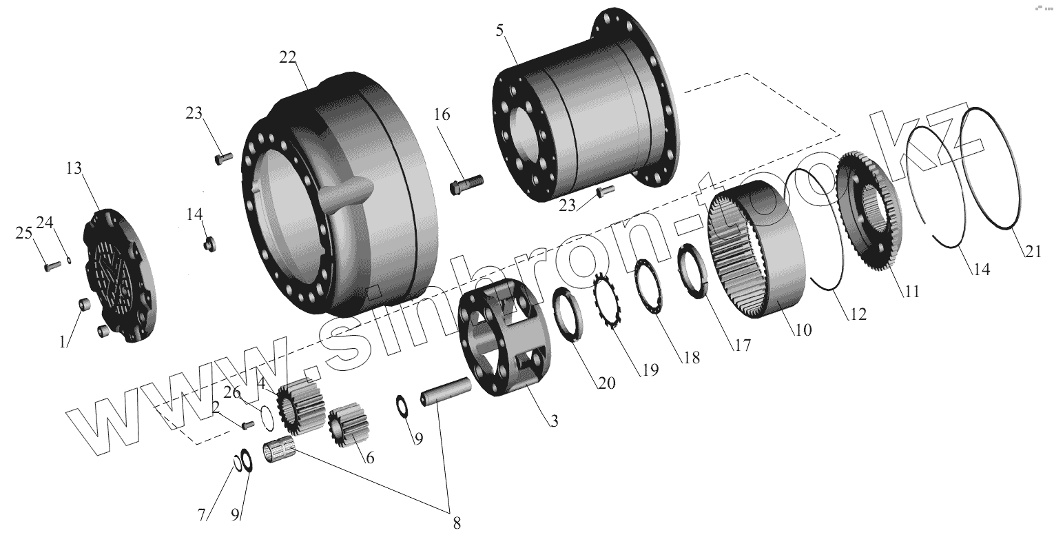 Каталог запасных частей к технике: МАЗ-6422, 5432. Колесный редуктор среднего моста