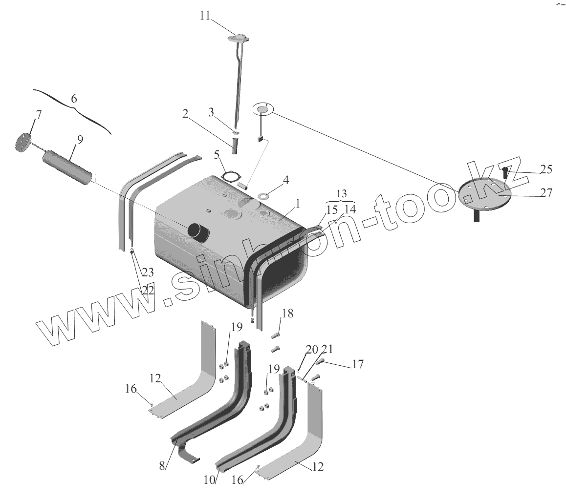 Каталог запасных частей к технике: МАЗ-6422, 5432. Крепление топливного бака 6422-1101002-010