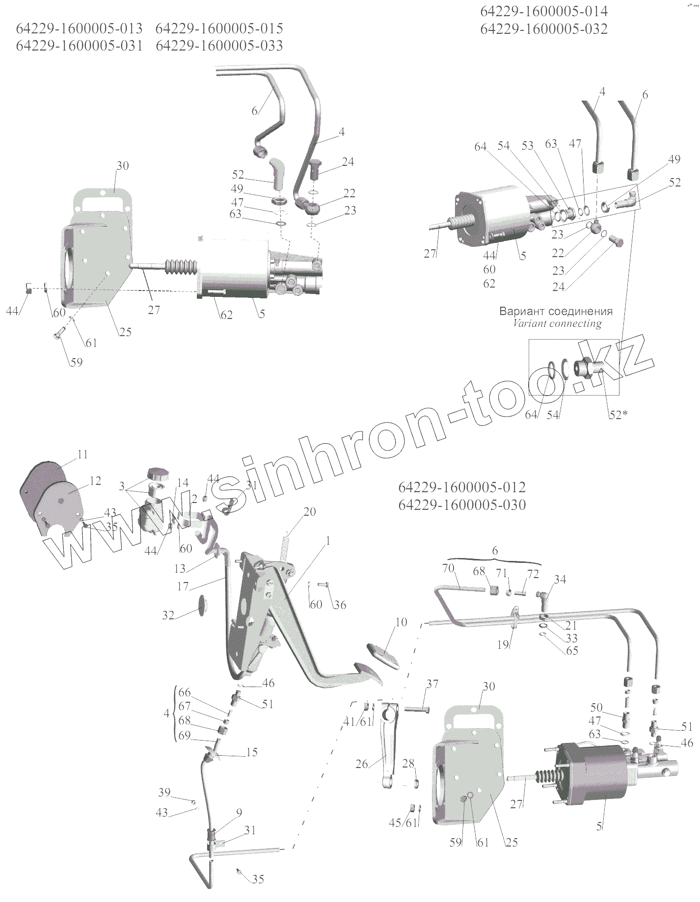 Каталог запасных частей к технике: МАЗ-6422, 5432. Механизм управления сцеплением