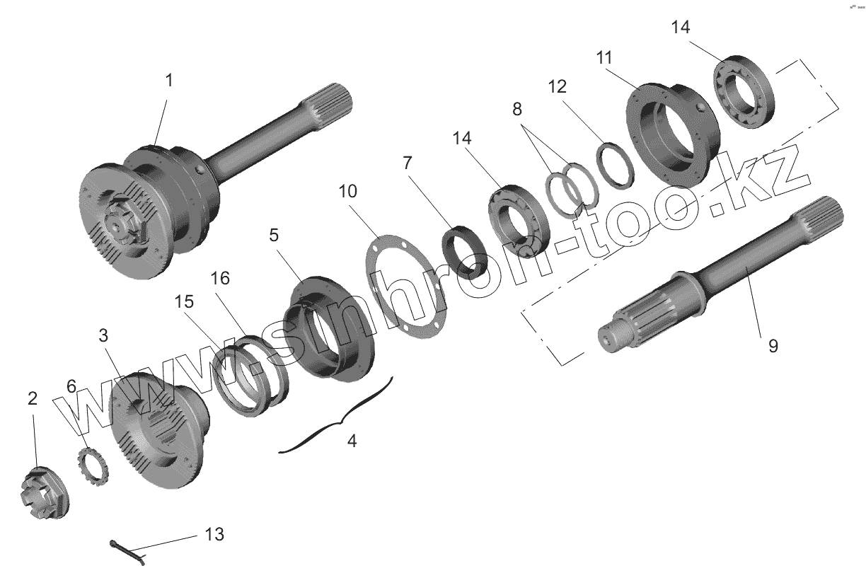 Каталог запасных частей к технике: МАЗ-6422, 5432. Мост средний. Вал задний