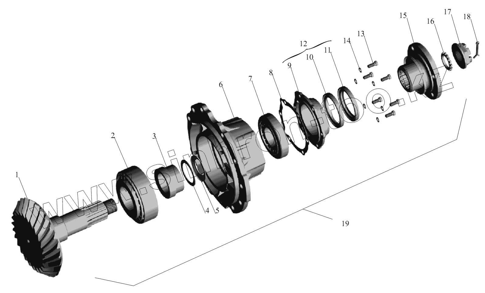 Каталог запасных частей к технике: МАЗ-6422, 5432. Редуктор заднего моста. Шестерня ведущая