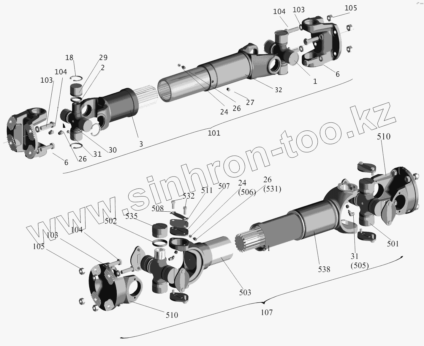 Каталог запасных частей к технике: МАЗ-6422, 5432. Установка карданных валов