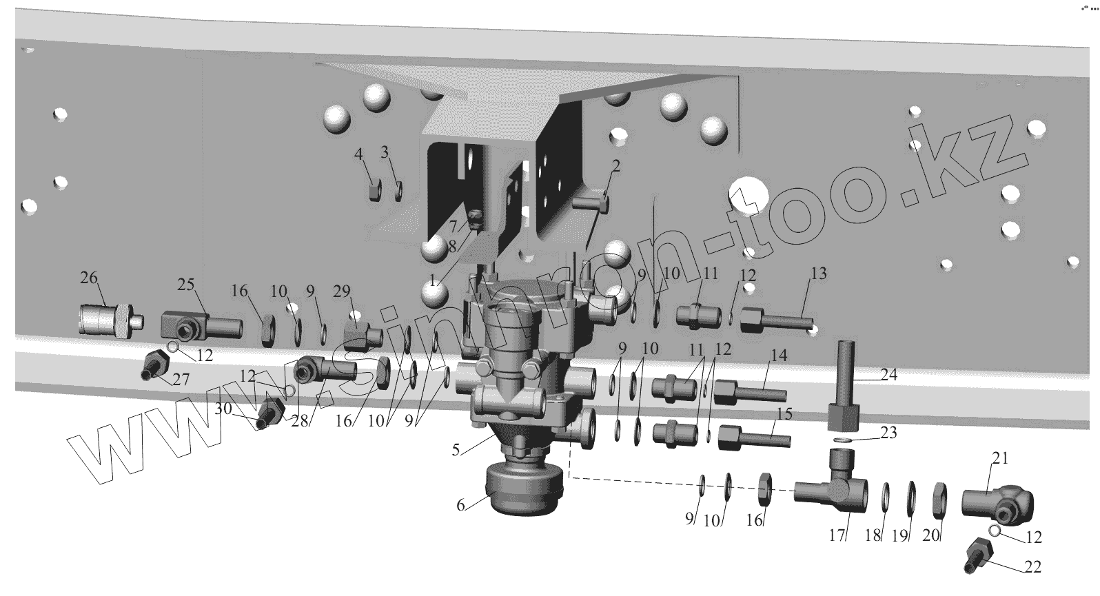 Каталог запасных частей к технике: МАЗ-6422, 5432. Установка клапана прицепа 642208-3522005