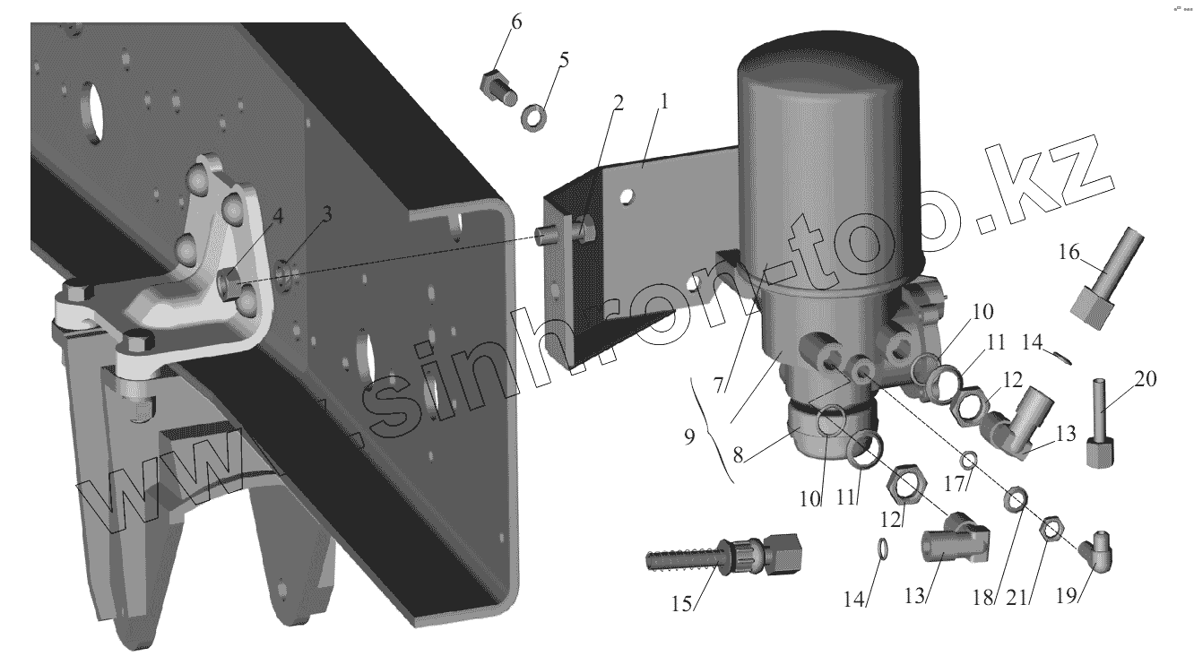 Каталог запасных частей к технике: МАЗ-6422, 5432. Установка осушителя воздуха 64255-3536004-010
