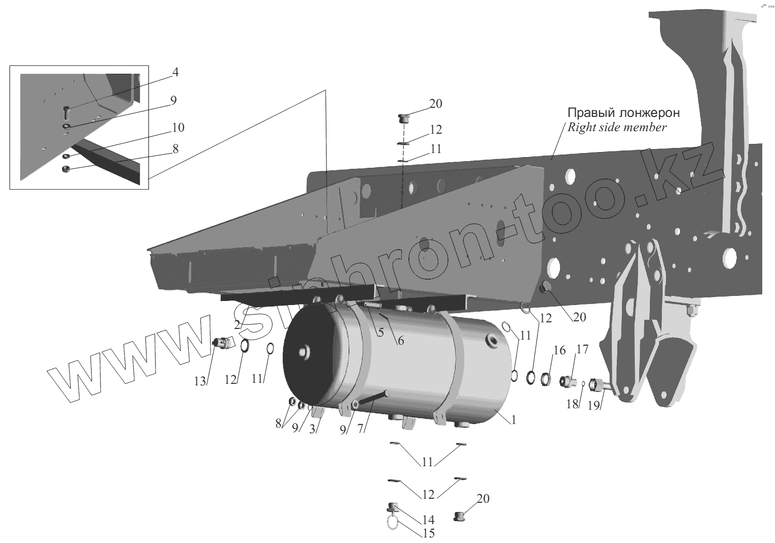 Каталог запасных частей к технике: МАЗ-6422, 5432. Установка ресивера 631708-3513005