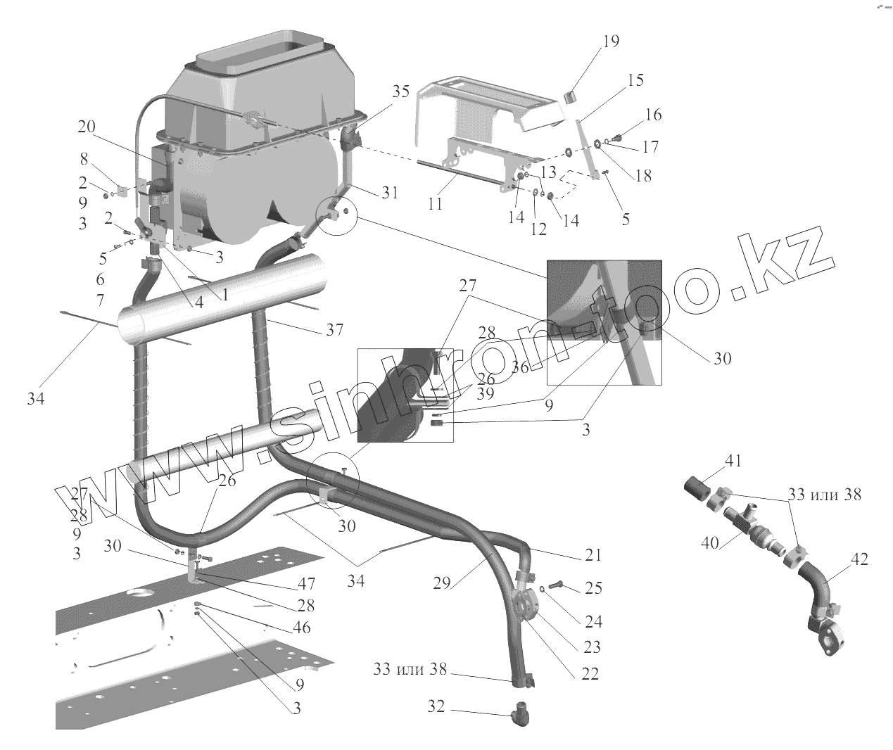 Каталог запасных частей к технике: МАЗ-6422, 5432. Установка шлангов и крана управления отопителем
