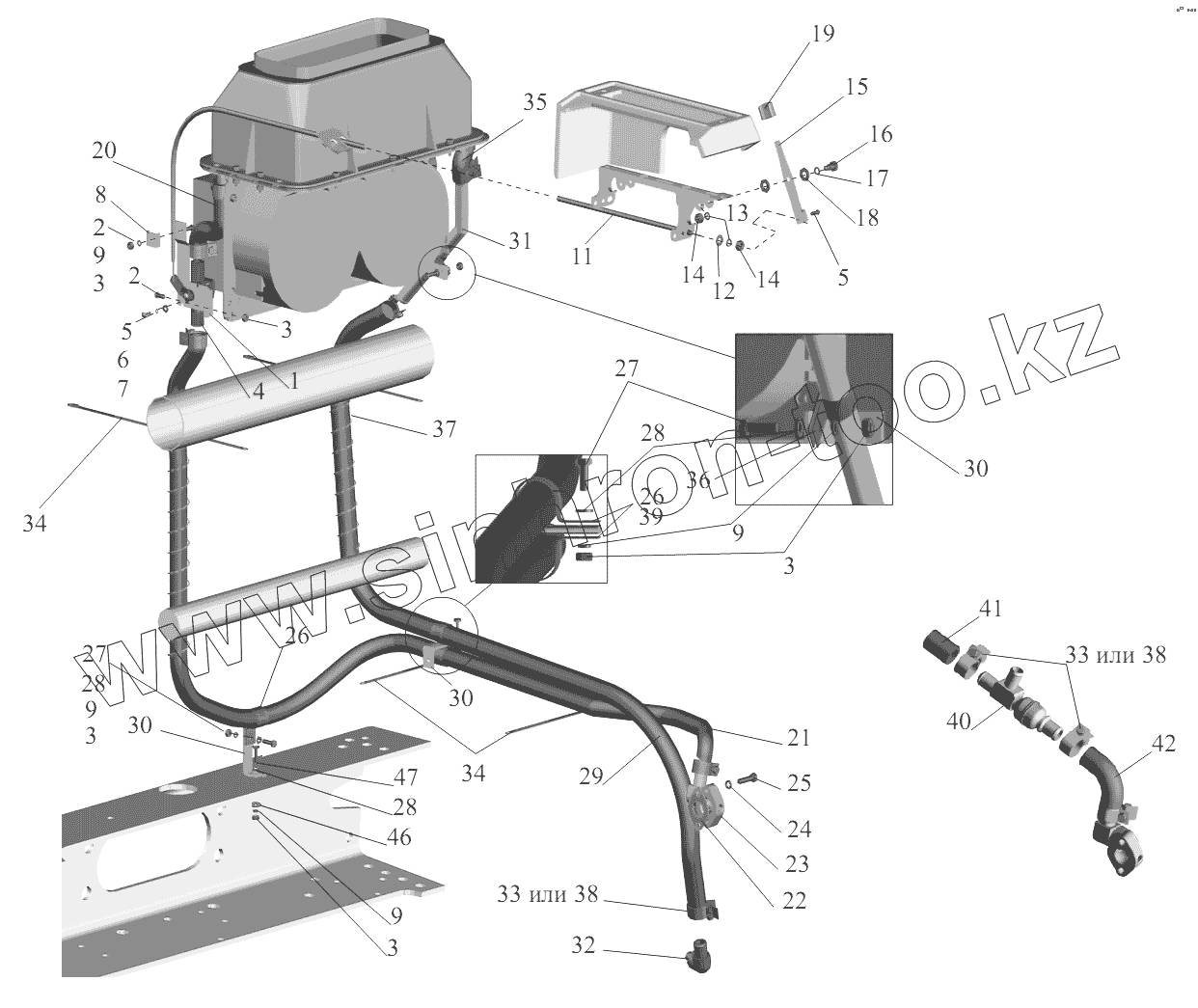 Каталог запасных частей к технике: МАЗ-6422, 5432. Установка шлангов и крана управления отопителем