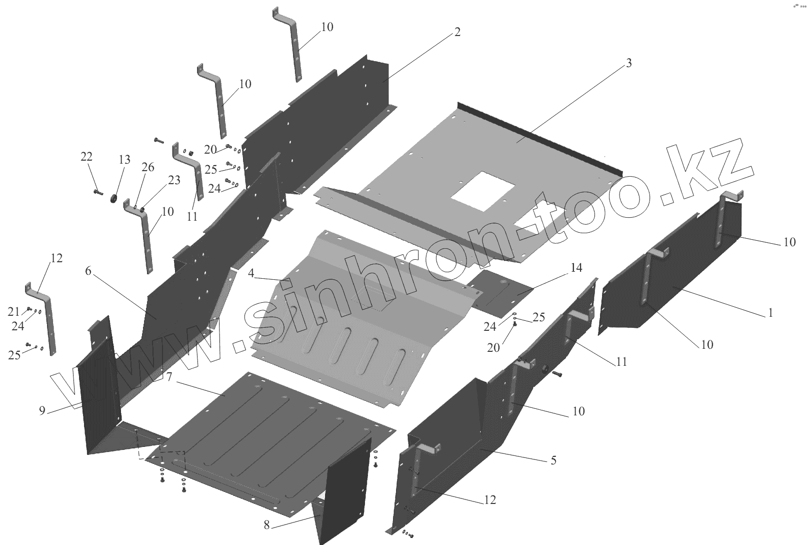 Каталог запасных частей к технике: МАЗ-6422, 5432. Установка шумоизоляционных экранов 543208-1061004