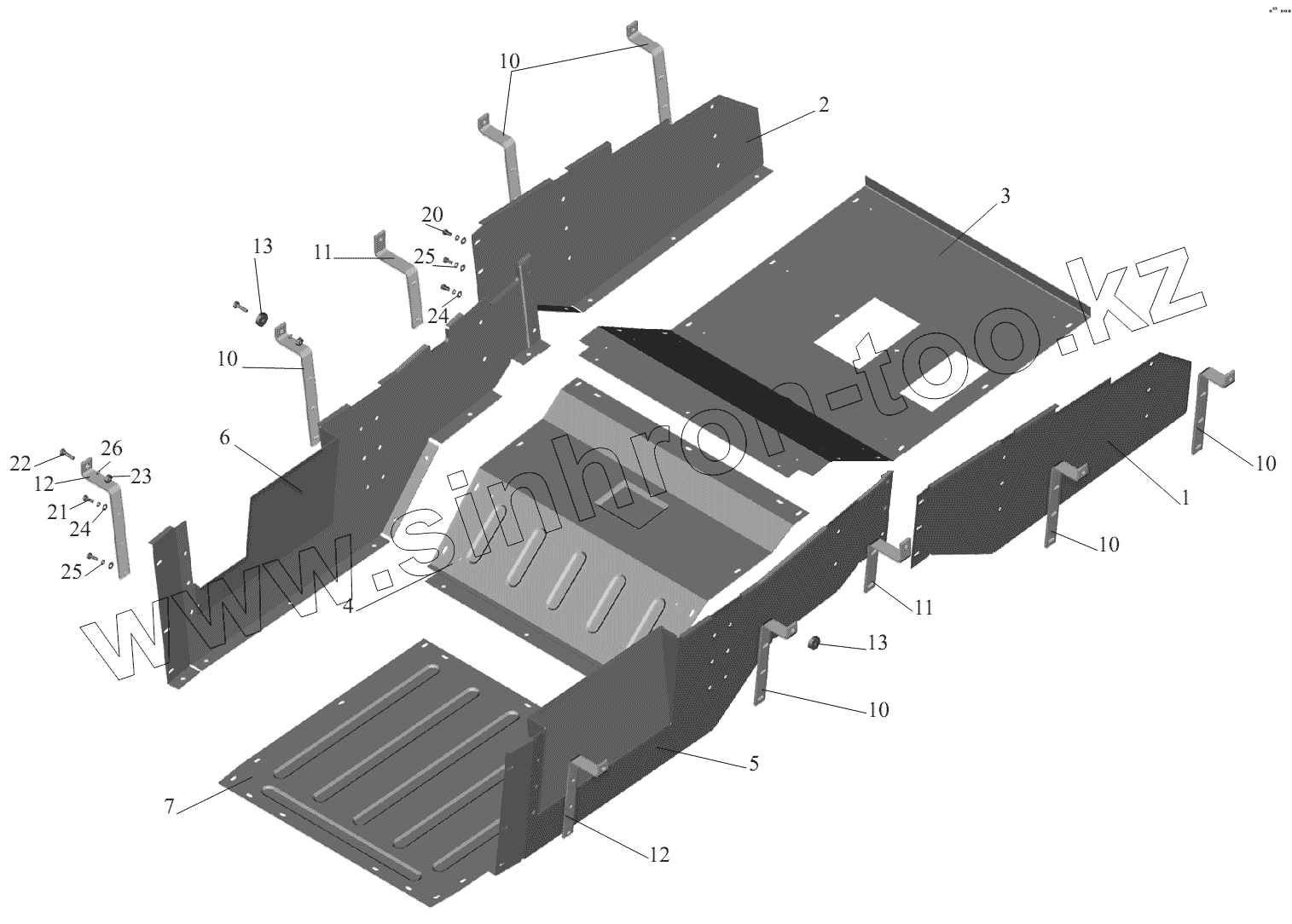 Каталог запасных частей к технике: МАЗ-6422, 5432. Установка шумоизоляционных экранов 642208-1061004-001