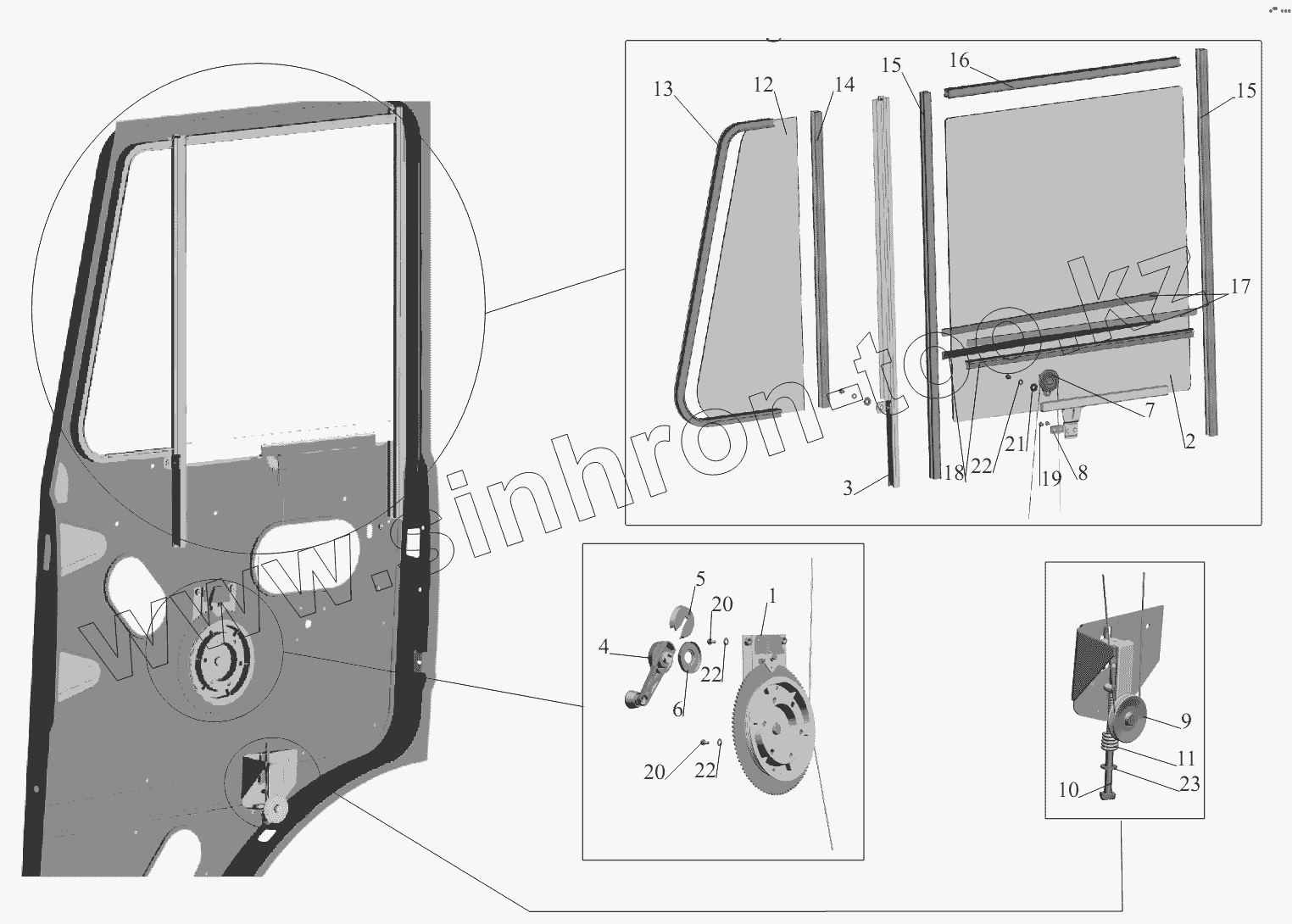 Каталог запасных частей к технике: МАЗ-6422, 5432. Установка стеклоподъемника и ручки стеклоподъемника