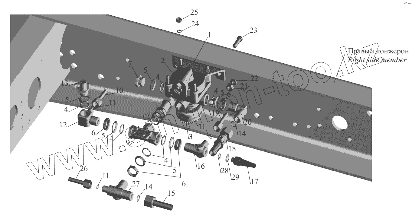 Каталог запасных частей к технике: МАЗ-6422, 5432. Установка ускорительного клапана 543240-3518004
