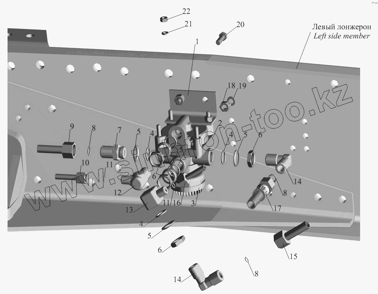 Каталог запасных частей к технике: МАЗ-6422, 5432. Установка ускорительного клапана 555102-3518004