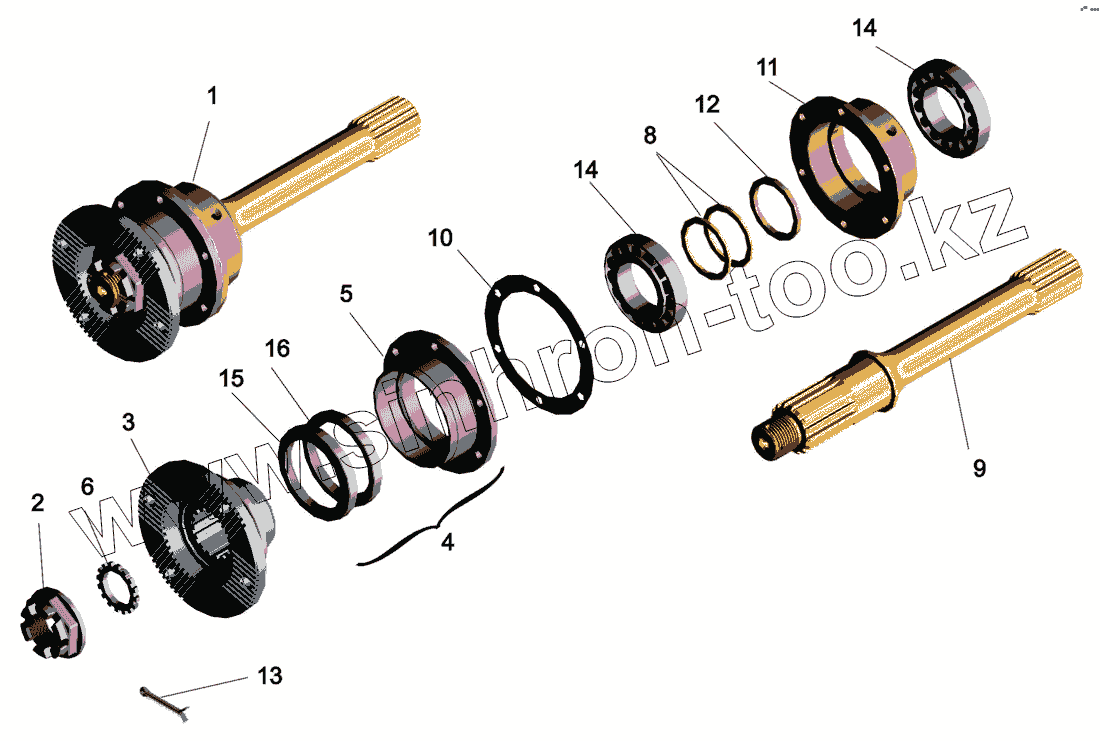Каталог запасных частей к технике: МАЗ-642505, 642508. Мост средний. Вал задний