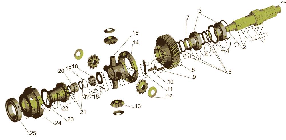 Каталог запасных частей к технике: МАЗ-642505, 642508. Редуктор среднего моста. Дифференциал межосевой