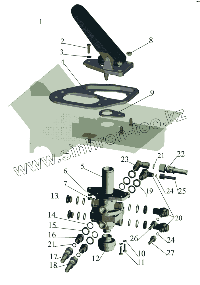 Каталог запасных частей к технике: МАЗ-642505, 642508. Тормозной кран с присоединительной арматурой