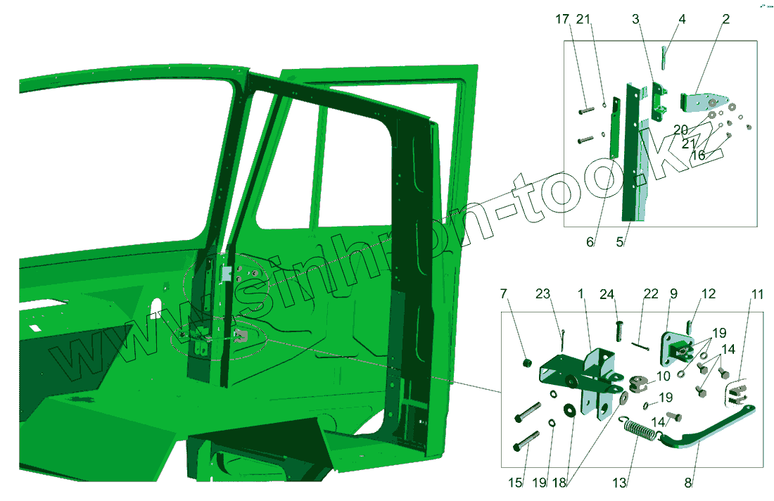 Каталог запасных частей к технике: МАЗ-642505, 642508. Установка ограничителя и петель двери