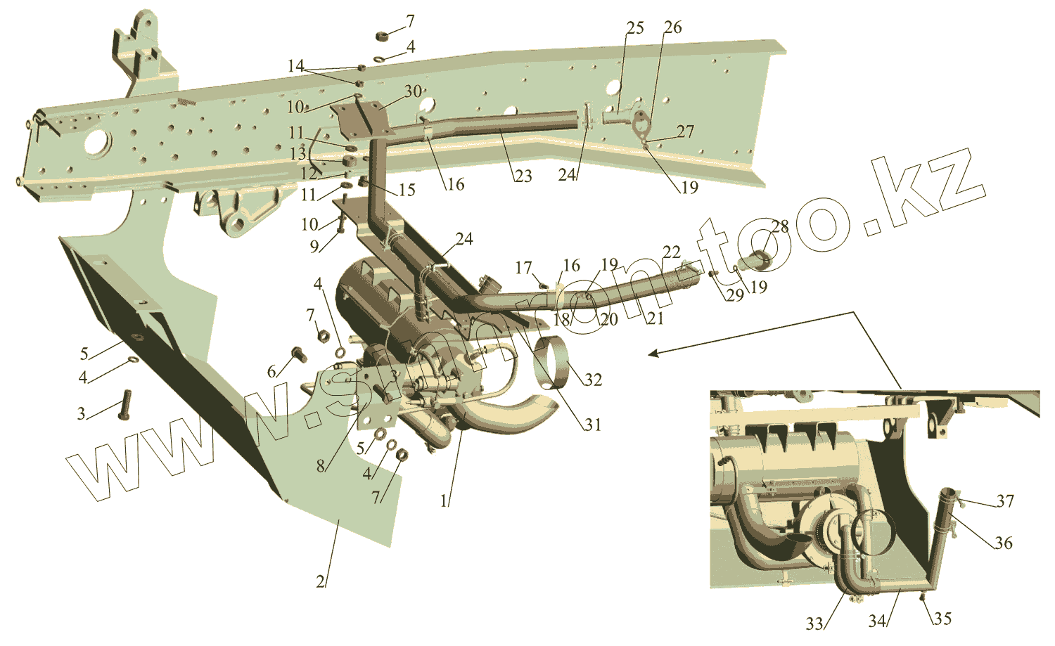 Каталог запасных частей к технике: МАЗ-642505, 642508. Установка подогревателя 641708-1015001
