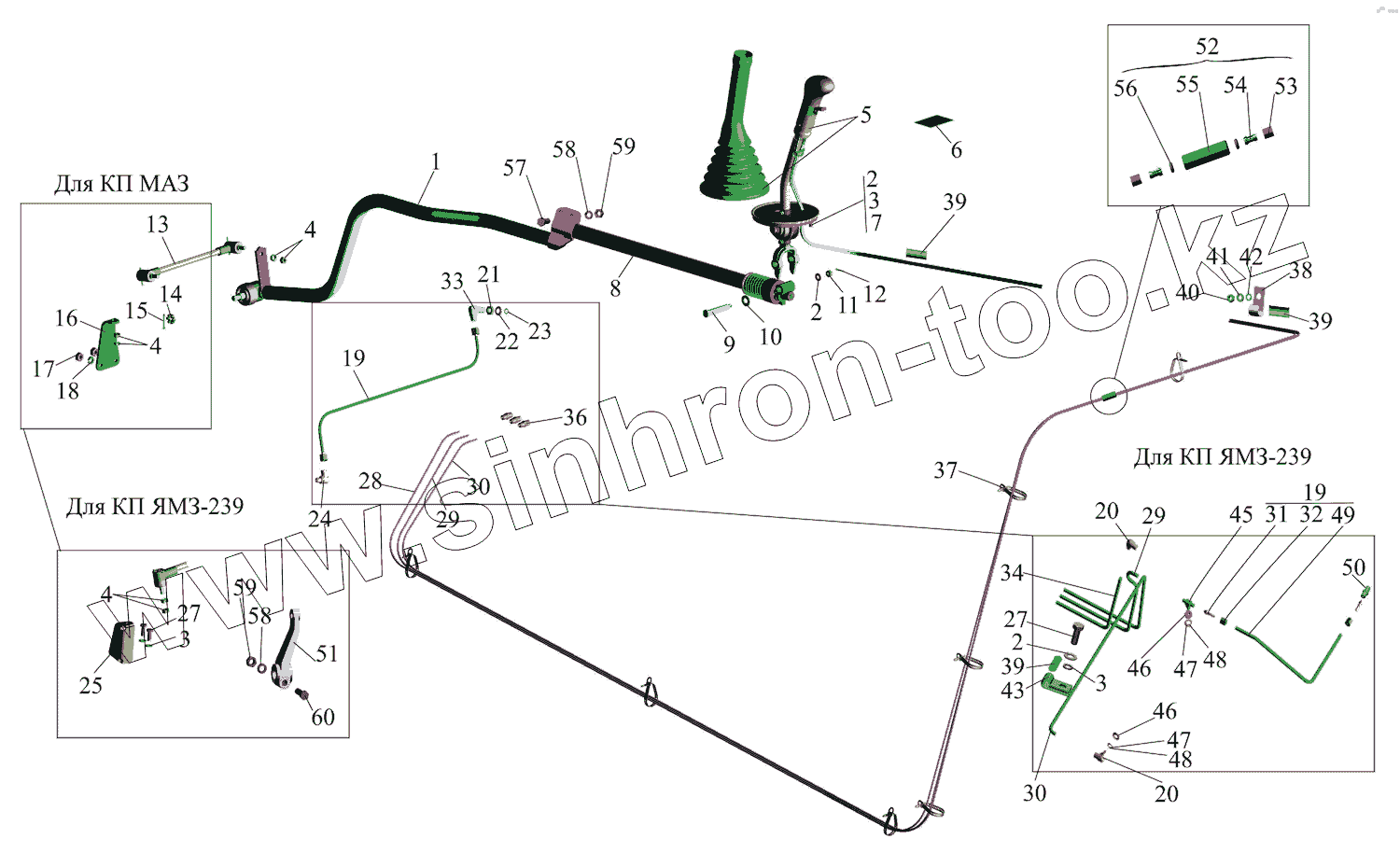 Каталог запасных частей к технике: МАЗ-642505, 642508. Установка привода управления коробки передач