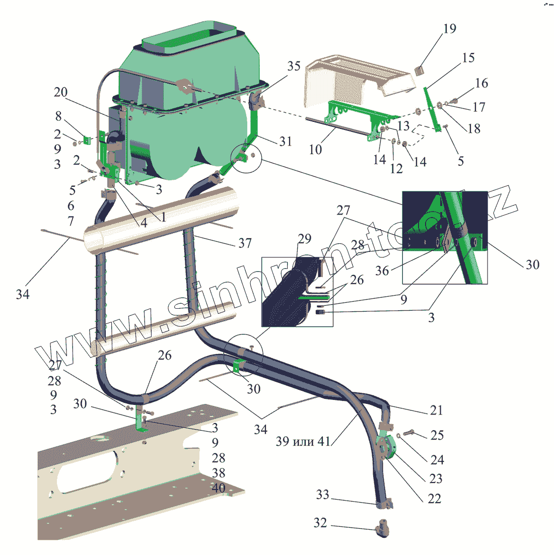 Каталог запасных частей к технике: МАЗ-642505, 642508. Установка шлангов и крана управления отопителем