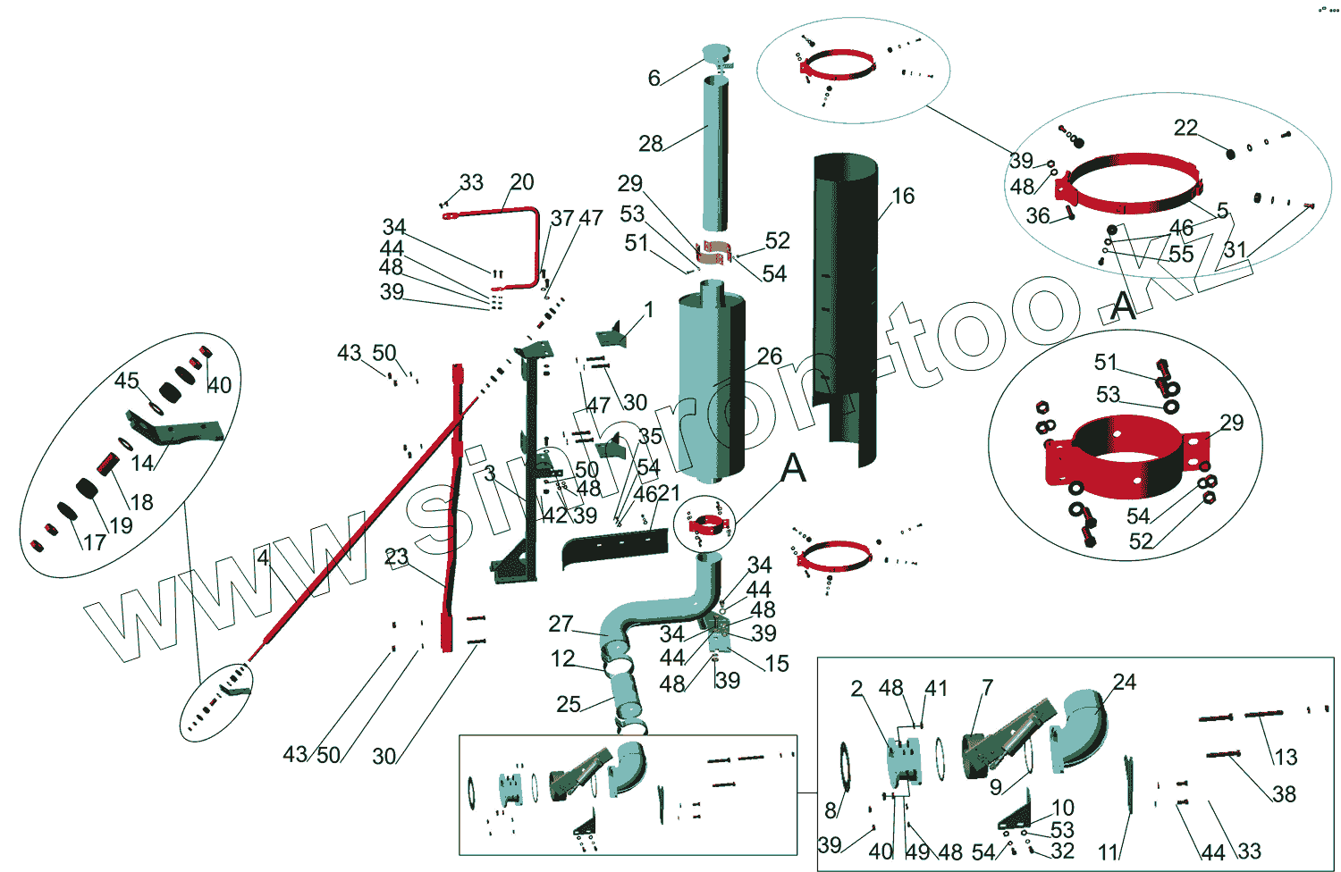 Каталог запасных частей к технике: МАЗ-642505, 642508. Установка системы выпуска отработанных газов