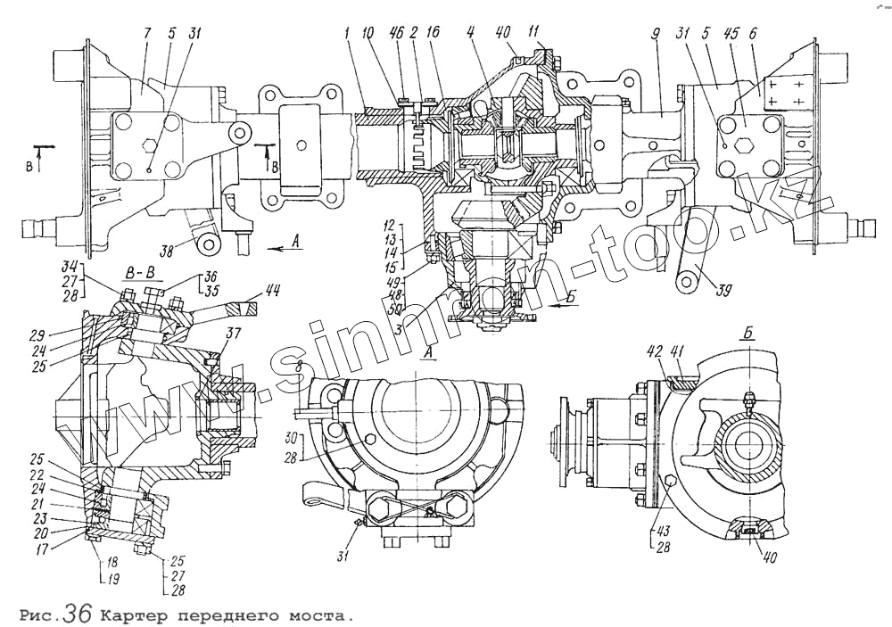 Каталог запасных частей к технике: МАЗ-64255. Картер переднего моста