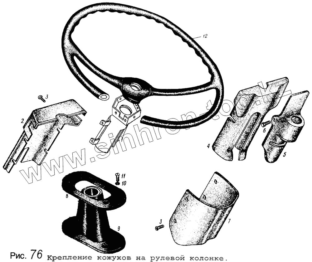 Каталог запасных частей к технике: МАЗ-64255. Крепление кожухов на рулевой колонке