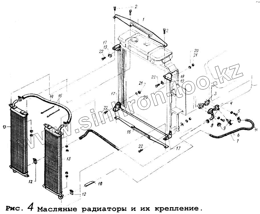 Каталог запасных частей к технике: МАЗ-64255. Масляные радиаторы и их крепление