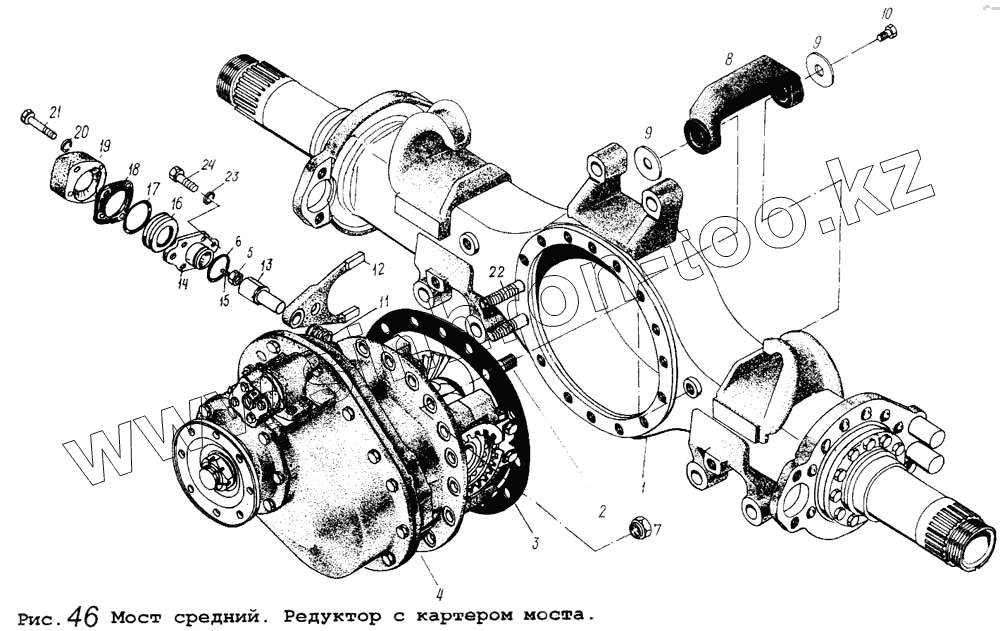 Каталог запасных частей к технике: МАЗ-64255. Мост средний. Редуктор с картером моста