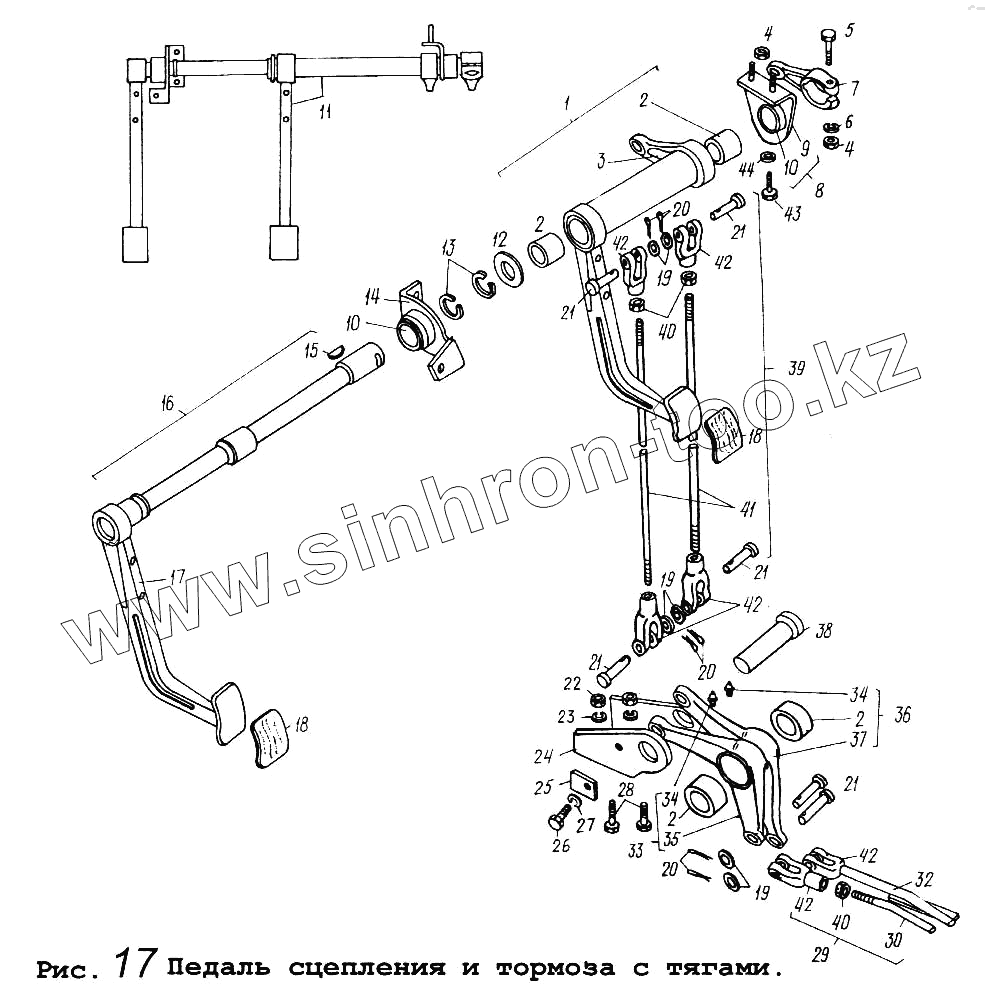 Каталог запасных частей к технике: МАЗ-64255. Педаль сцепления и тормоза с тягами