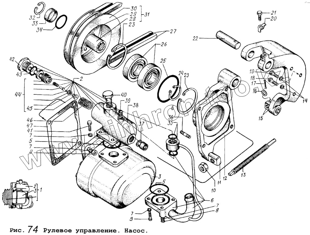Каталог запасных частей к технике: МАЗ-64255. Рулевое управление. Насос