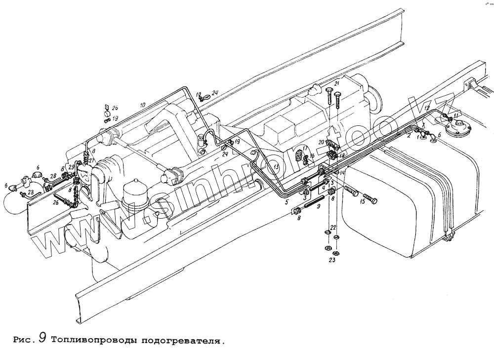 Каталог запасных частей к технике: МАЗ-64255. Топливопроводы подогревателя