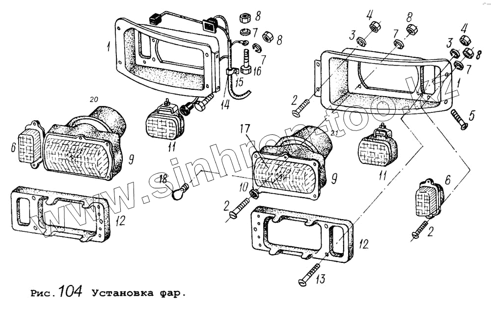 Каталог запасных частей к технике: МАЗ-64255. Установка фар