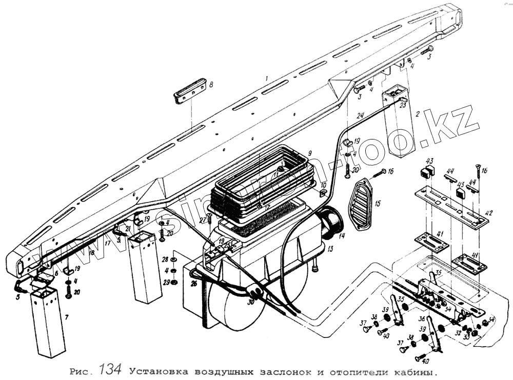 Каталог запасных частей к технике: МАЗ-64255. Установка воздушных заслонок и отопителя кабины
