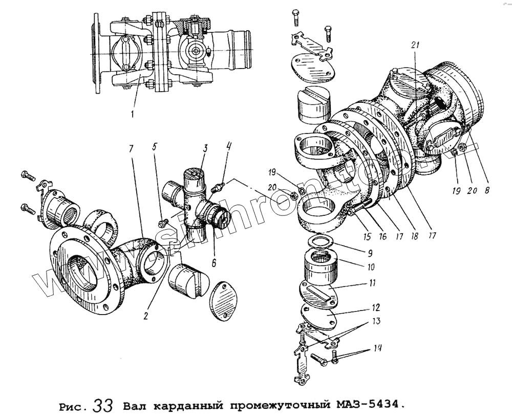 Каталог запасных частей к технике: МАЗ-64255. Вал карданный промежуточный МАЗ-5434