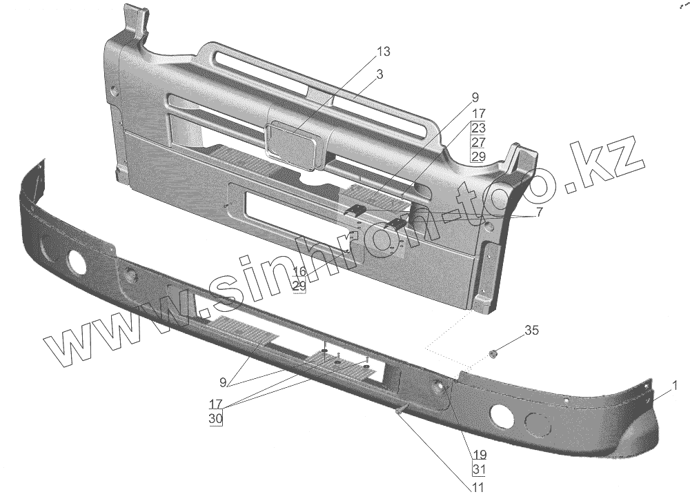 Каталог запасных частей к технике: МАЗ-643018. Бампер передний 643019-2803010