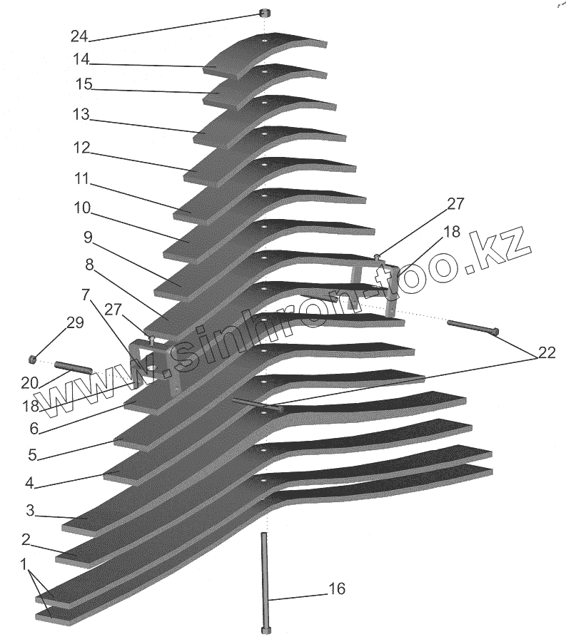 Каталог запасных частей к технике: МАЗ-643018. Рессора задняя 55165-2912012-010