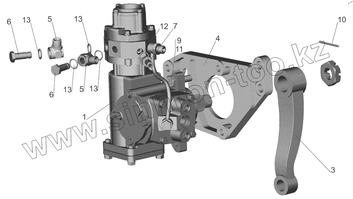Каталог запасных частей к технике: МАЗ-643018. Рулевой механизм с кронштейном 544019-3400006
