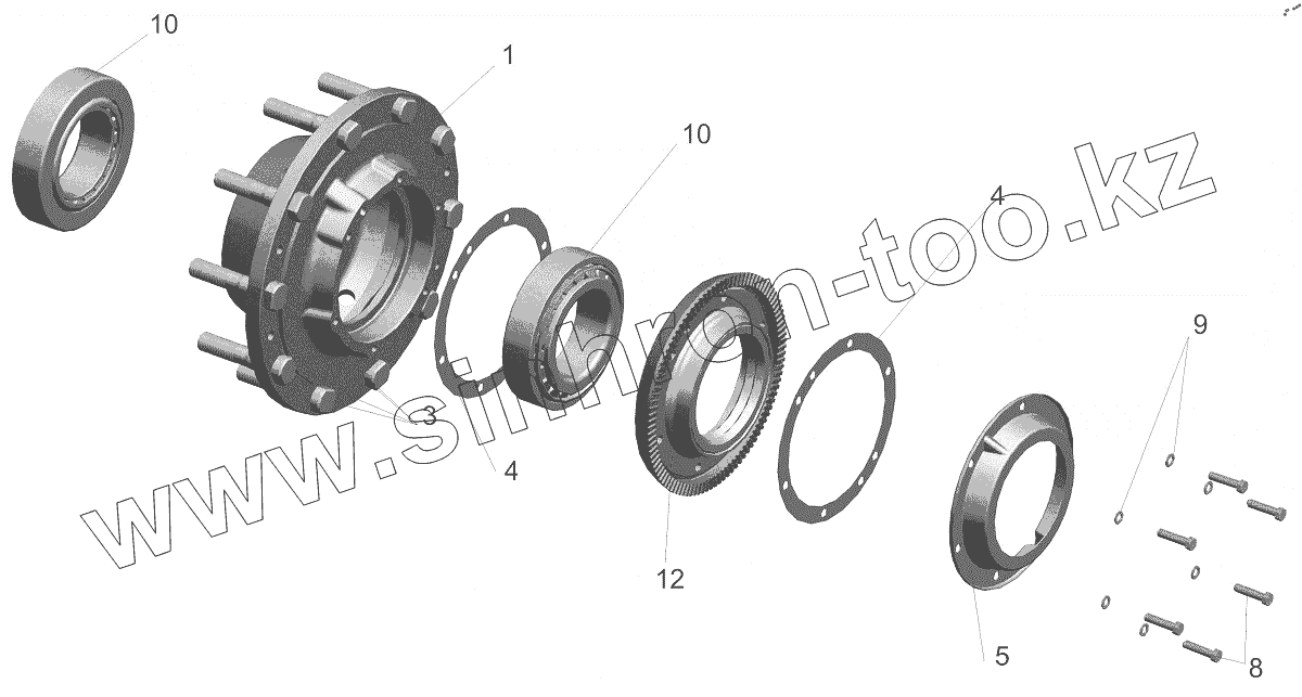 Каталог запасных частей к технике: МАЗ-643018. Ступица с крышкой 543266-3104006-600